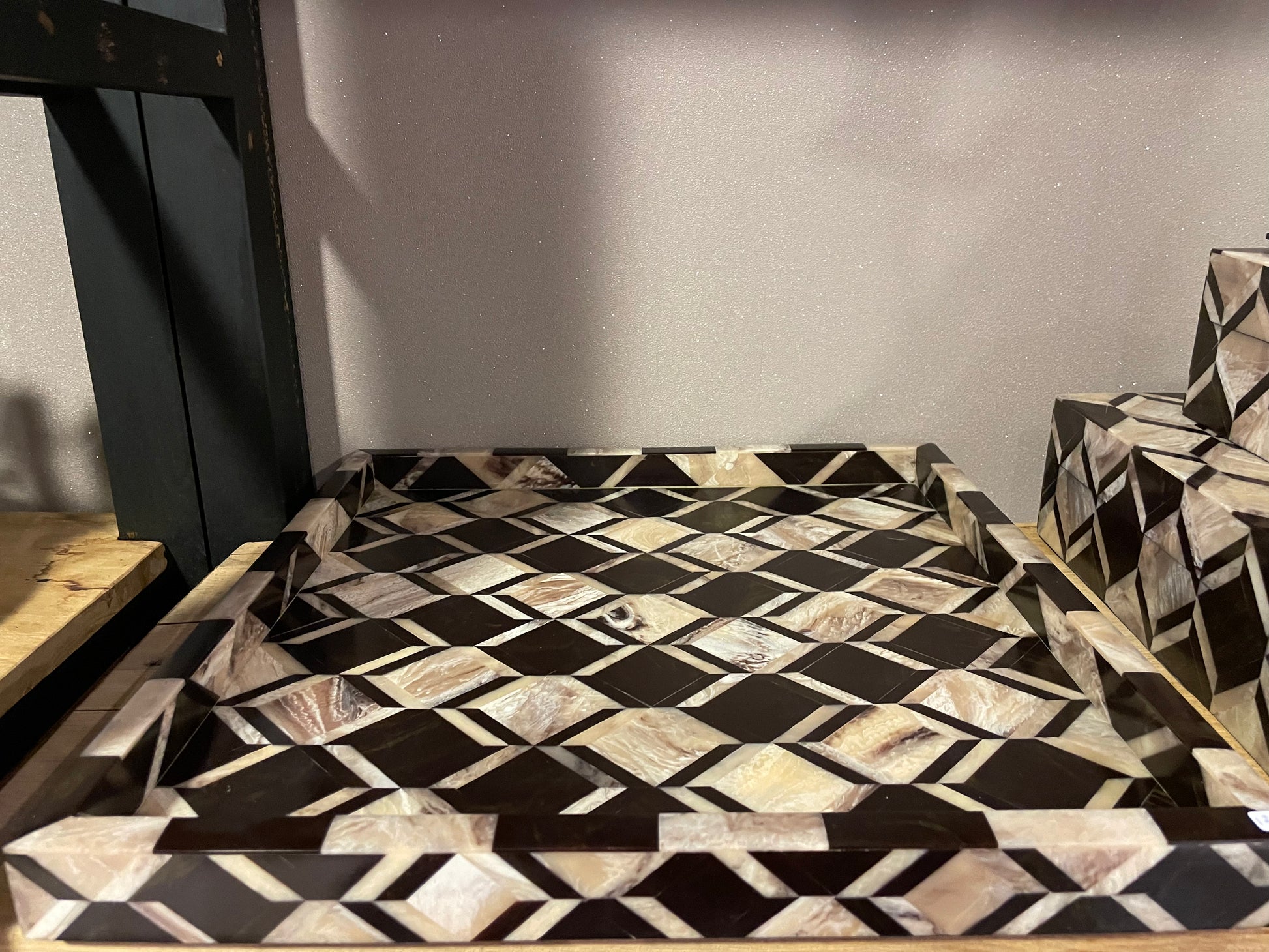 Dienblad ZIGZAG ZWART/NATUREL RESIN 40x30x14 cm