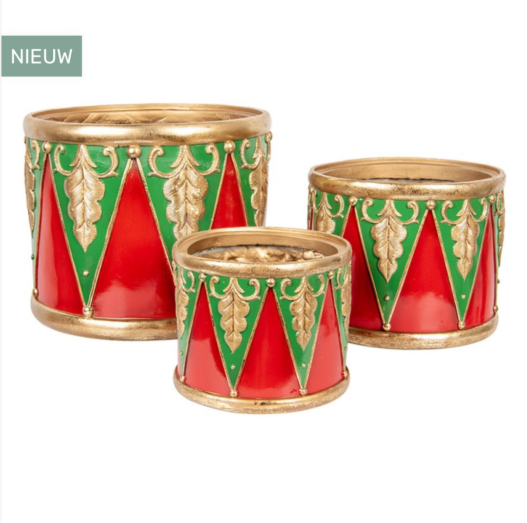 Kerst collectie plantenbakken Ø 32X25/Ø 24X19/Ø 18X15 CM ROOD kunststof