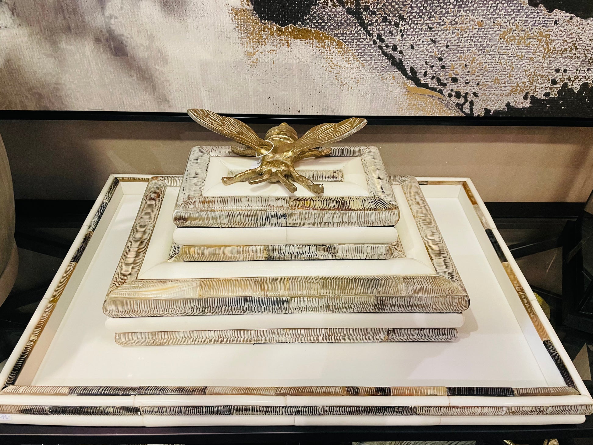 Luxe bewaardoos 'Wave' van RAF deluxe is prachtig als decoratie item op een bijzettafel of vakkenkast. Handgemaakt van hoorn in 2 bewerkingen, egaal en geribbeld hoorn om deze elegante en uniek ontworpen box te creëren. Stijlvol en tegelijkertijd praktisch te gebruiken als opbergbox. Elk item is uniek!