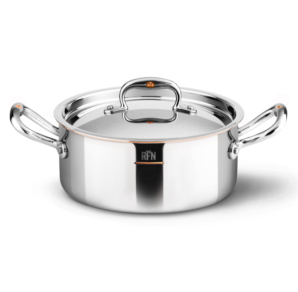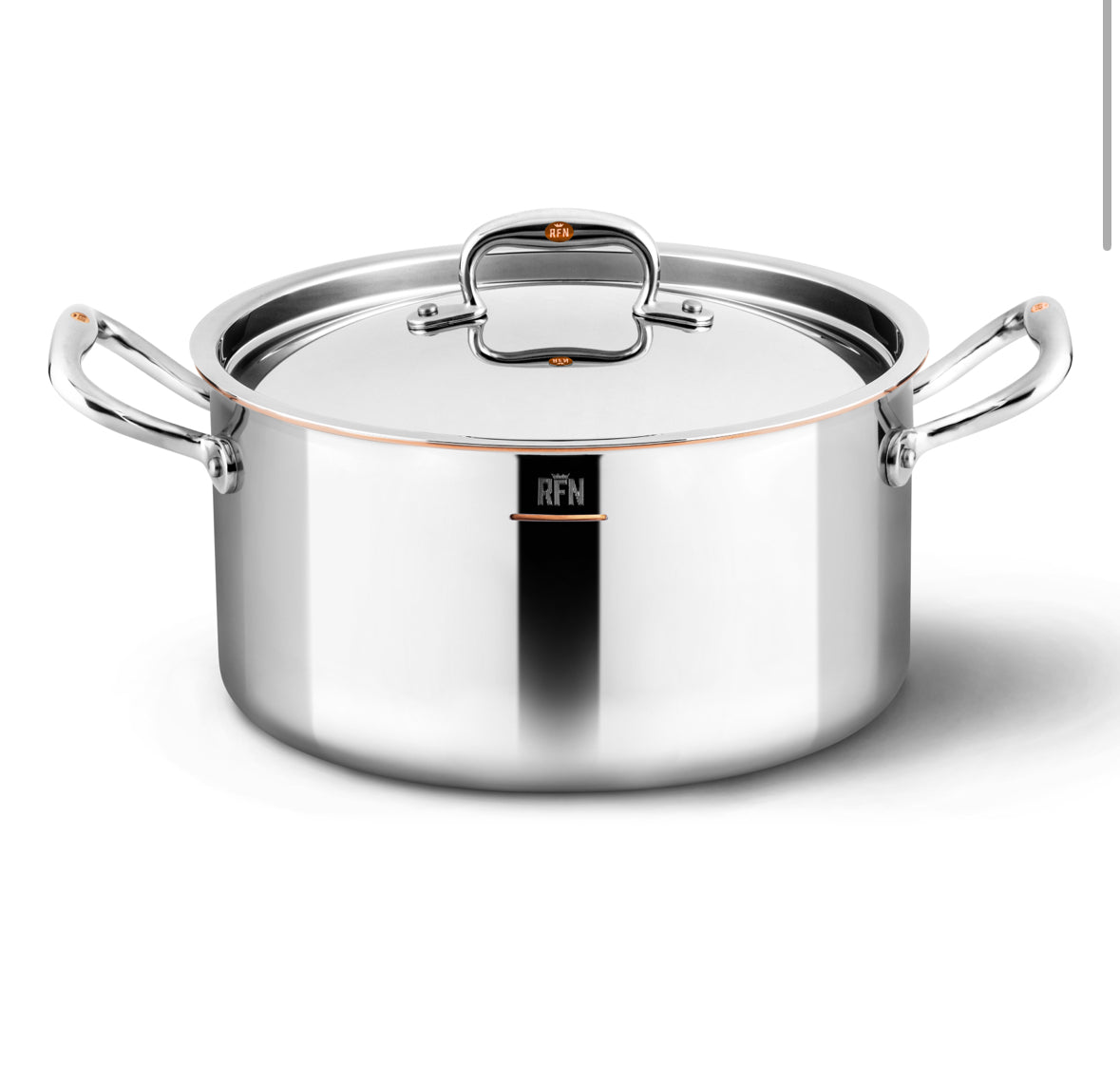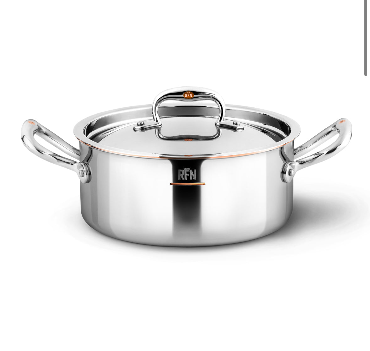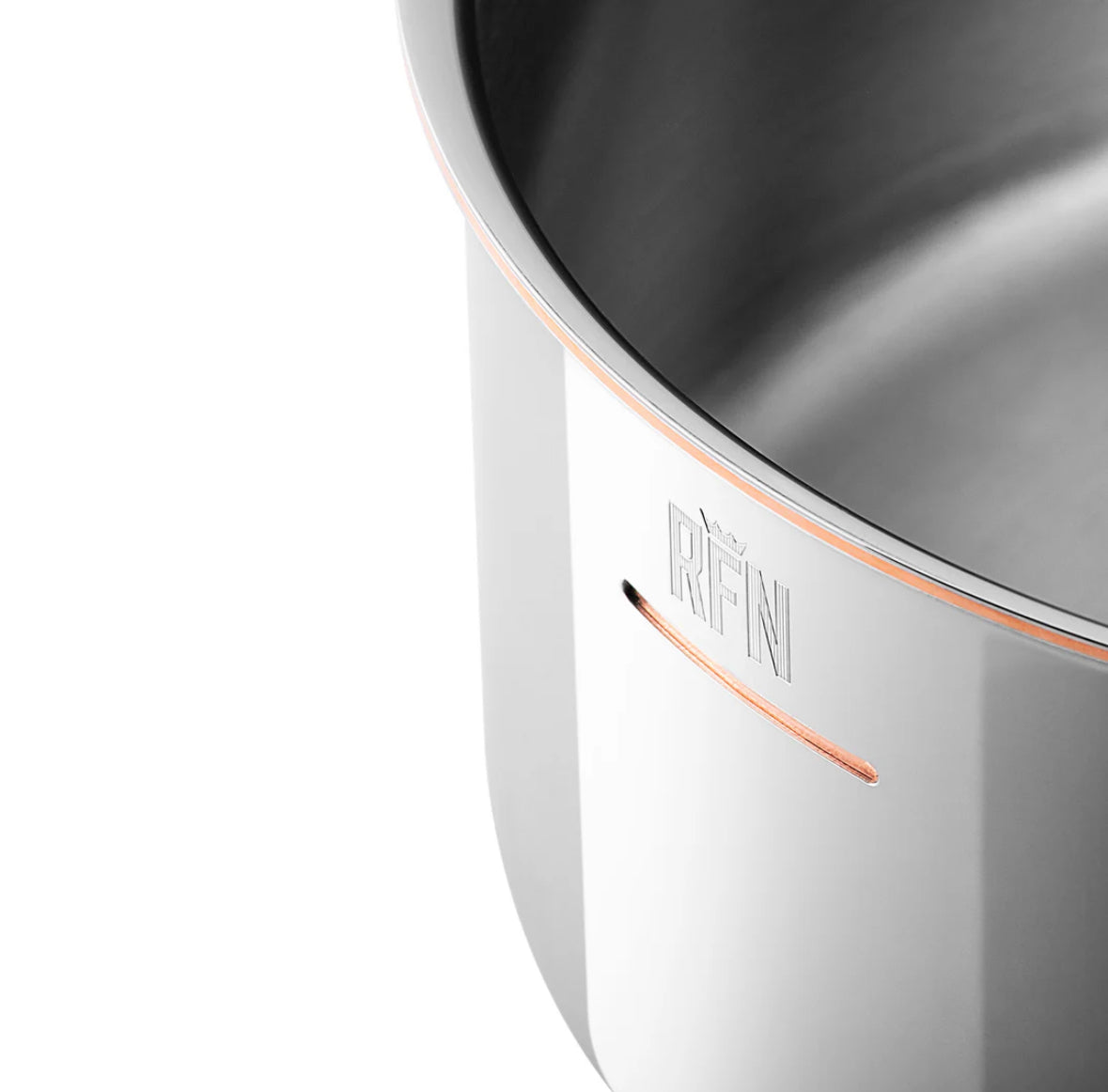Deze schitterende Ruffoni pannenset maakt onderdeel uit van de Con Cuore-serie. Deze lijn bestaat uit schitterende duurzame pannen gemaakt van twee soorten metaal. De kern van de pan is namelijk gemaakt van koper maar de buitenzijde is gemaakt van hoogwaardig roestvrij staal. Het koper zorgt voor een snelle en gelijkmatige warmteverspreiding. Terwijl het RVS de pan supersterk en praktisch maakt, waardoor de pan ook te gebruiken is op een inductiefornuis.